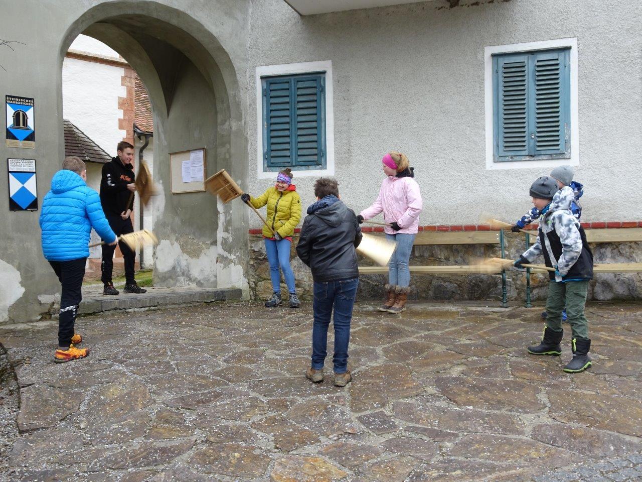 Ihr Ratschenspruch am Karfreitag lautete heuer: "Wir ratschen, wir ratschen zum Englischen Gruß, den jeder Christ beten muss. Kniet`s nieder, kniet`s nieder auf eure Knie, bet`s drei Vaterunser und drei Avemarie!"