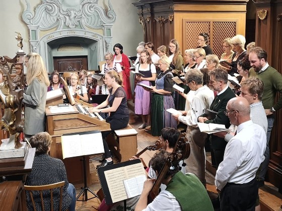 Mit dem Schulanfang nahm auch der Chor der Pfarre Frohnleiten wieder seine wöchentlichen Proben auf und bereitete für die festliche Messe zum Erntedankfest die „Missa brevis Sancti Joannis de Deo“ von Joseph Haydn vor. Den bekannteren Beinamen „Kleine Orgelsolo-Messe“ trägt das Werk, weil das „Benedictus“ zusätzlich zu den Streichern ein virtuoses Orgelsolo zur Begleitung der Sopransolistin enthält.