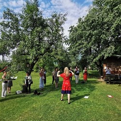 Nach langer Zeit wieder eine gemeinsame Messe: Anläßlich des silbernen Priesterjubiläums unseres Pfarrers Ronald Ruthofer sangen wir am Ende der Messe ein kleines Ständchen! Den „Halleluja“-Kanon von Philip Hayes hatten wir davor nur in Form einer Videokonferenz geprobt. Direkt vor der Messe konnten wir uns dank des sommerlichen Wetters im Klostergarten einsingen und uns zusammenhören, sodaß unser musikalische Beitrag zu dieser festlichen Messe gut gelang!
