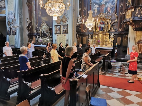 Während des Corona-Lockdowns entstand die Idee, unser Chorjahr mit einer gemeinsamen Andacht zu beschließen und damit gleichzeitig einen Neubeginn des Chorsingens zu feiern. Pfarrer Ronald Ruthofer fand sehr persönliche Worte für uns Sängerinnen und Sänger und betonte den Wert der Kirchenmusik als „systemrelevant“ für die Messfeiern. Es war sehr schön, wieder miteinander zu singen und zu beten, und wir ließen unser Treffen noch gemütlich im Klostergarten ausklingen.