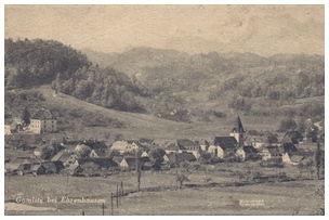 Der Name des Ortes ist slawischen Ursprungs, ist vom Wort „gom = Hügel“ abgeleitet und bezieht sich auf die erwähnten Hügelgräber, vielleicht aber auch auf die zahlreichen Hügel dieses Landstriches, die den Windischen Büheln ihren Namen gegeben haben.