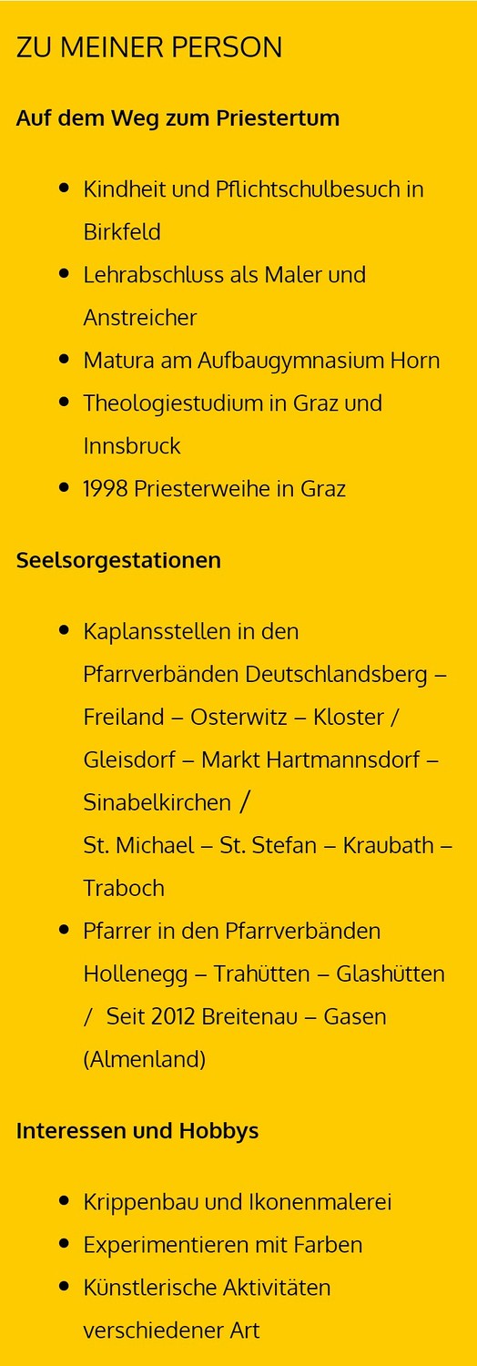 Ich bin überzeugt, dass Gott uns durch und über die Zeiten hinaus begleitet. Ich wünsche uns viele schöne, zu Herzen gehende Momente, Erfahrungen und Augenblicke. Ich wünsche uns Erfahrungen, dass Gott uns im Alltag überrascht. Ich wünsche uns, dass wir uns von Gott getragen und begleitet wissen. Alle Augenblicke unseres Lebens lang.