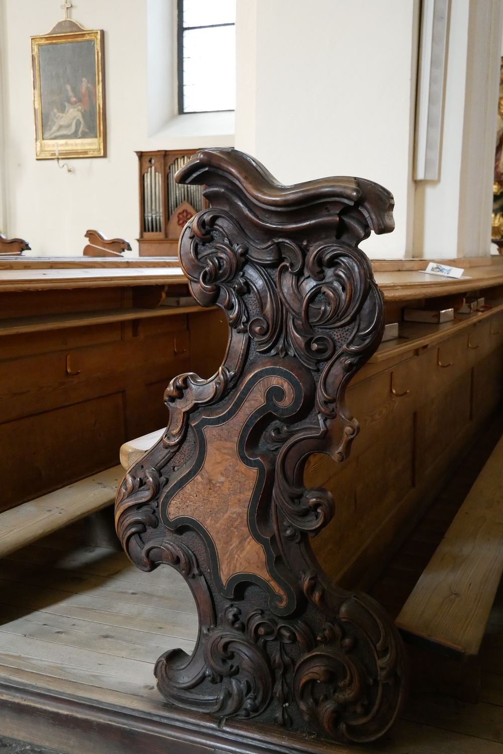 Bemerkenswert sind auch die Wangen des Gestühls im Langhaus, die 1740 von einem unbekannten Künstler geschnitzt wurden.