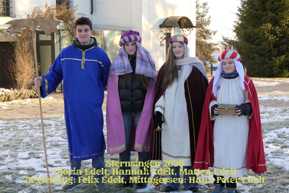 Neben den vielen helfenden Händen, die zum Gelingen der Aktion beigetragen haben, etwa beim Nähen der Gewänder, dem Vorbereiten des Materials, den Mamas, Papas, Omas, Opas, die ihre kleinen Könige zu den Proben gebracht und am Einsatztag beim Herrichten geholfen haben, den Köchinnen und Köchen, welche zum königlichen Mittags- oder Abendmahl geladen haben, dem Fototeam, Fahrdiensten und vielen weiteren mehr, sei vor allem den Kindern, Jugendlichen und Erwachsenen gedankt, die von Haus zu Haus gegangen und den Segen der Pfarrbevölkerung überbracht haben.