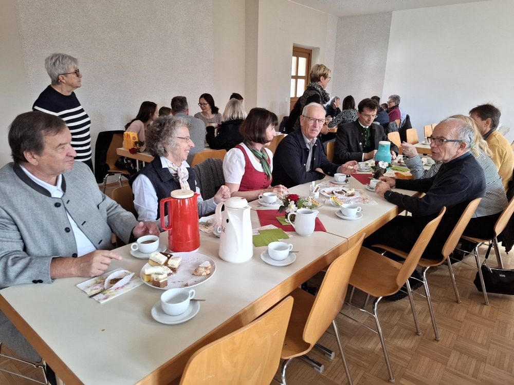 Zum anschließenden Pfarrkaffee lud der Kirchenchor herzlich ein und freute sich über viele Gäste, die das Zusammensitzen bei Kuchen und Kaffee/Tee in netter Gemeinschaft - auch mit Diakon Johannes und seiner Familie - sehr genossen. Ein netter Ausklang eines besonderen Vormittags!