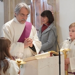 Eine Besonderheit inmitten der Feier stellte die Katechumenensalbung eines Erstkommunionmädchens dar, das im April getauft wird, um dann im Mai gemeinsam mit den anderen Kindern die Erstkommunion empfangen zu können.