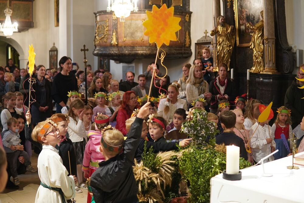 Ein herzliches Danke allen, die so schön mitgestaltet und mitgefeiert haben: Dies waren die Kindergartenkinder (Erntedank Tanz), die Minis und MS-Schüler*innen (Zeichenhandlung mit Erntegaben), die Landjugend (Erntekrone), die Musikgruppe (begeisternde Musik) und viele mehr.