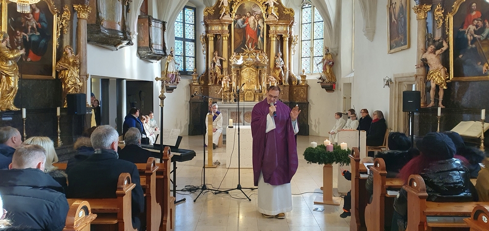 Nach herzlicher Begrüßung durch Diakon Michi Zepf zelebrierte Markus, der ehemals Pastoralpraktikant in unserer Pfarre und Pastoralreferent im Seelsorgeraum Kaiserwald gewesen war, in festlichem Rahmen die heilige Messe.