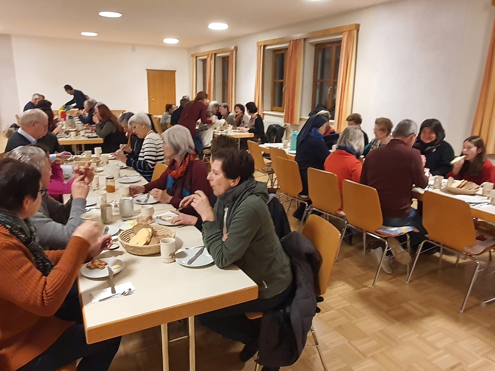 Bei einer gemütlichen Agape im Pfarrheim gab es dann noch angeregte Diskussionen über unseren eigenen kleinen möglichen Beitrag zum Weltfrieden.