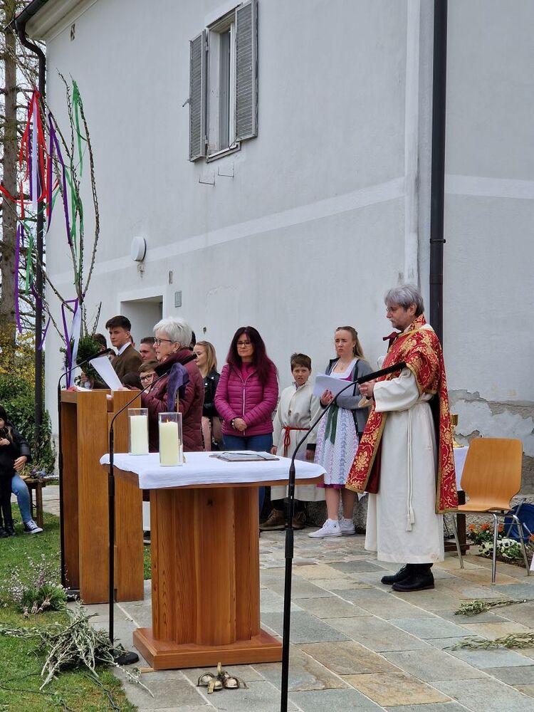 Dieses freudige Geschehen feierten wir am 2. April in großer Gemeinschaft auf unserem Kirchplatz. Diakon Michi Zepf zelebrierte und viele wirkten an der Gestaltung mit: die Musikgruppe, der Kirchenchor, Minis und JS (Passion), die Kindergartenkinder (Lieder), MS-Schülerinnen (Fürbitten) und die LJ (Palmbuschen). Danke allen fürs Kommen, Mitfeiern und Mithelfen!